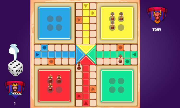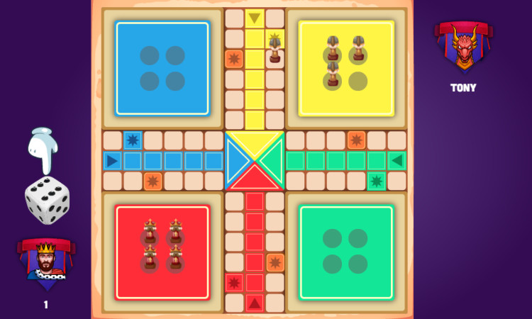 - Om te beginnen gooit u een zes. Elke speler gooit om de beurt met één dobbelsteen. Om een fiche van je basis naar het speelbord te verplaatsen, moet je een zes gooien.