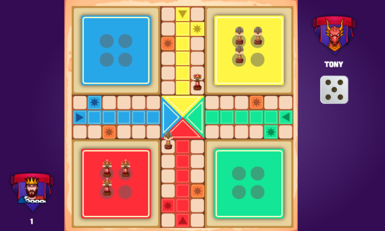 - Vooruitgaan en veroveren: Verplaats de tegels vooruit volgens het gegooide nummer. Als je op een stuk van je tegenstander landt, wordt deze teruggestuurd naar zijn basis.